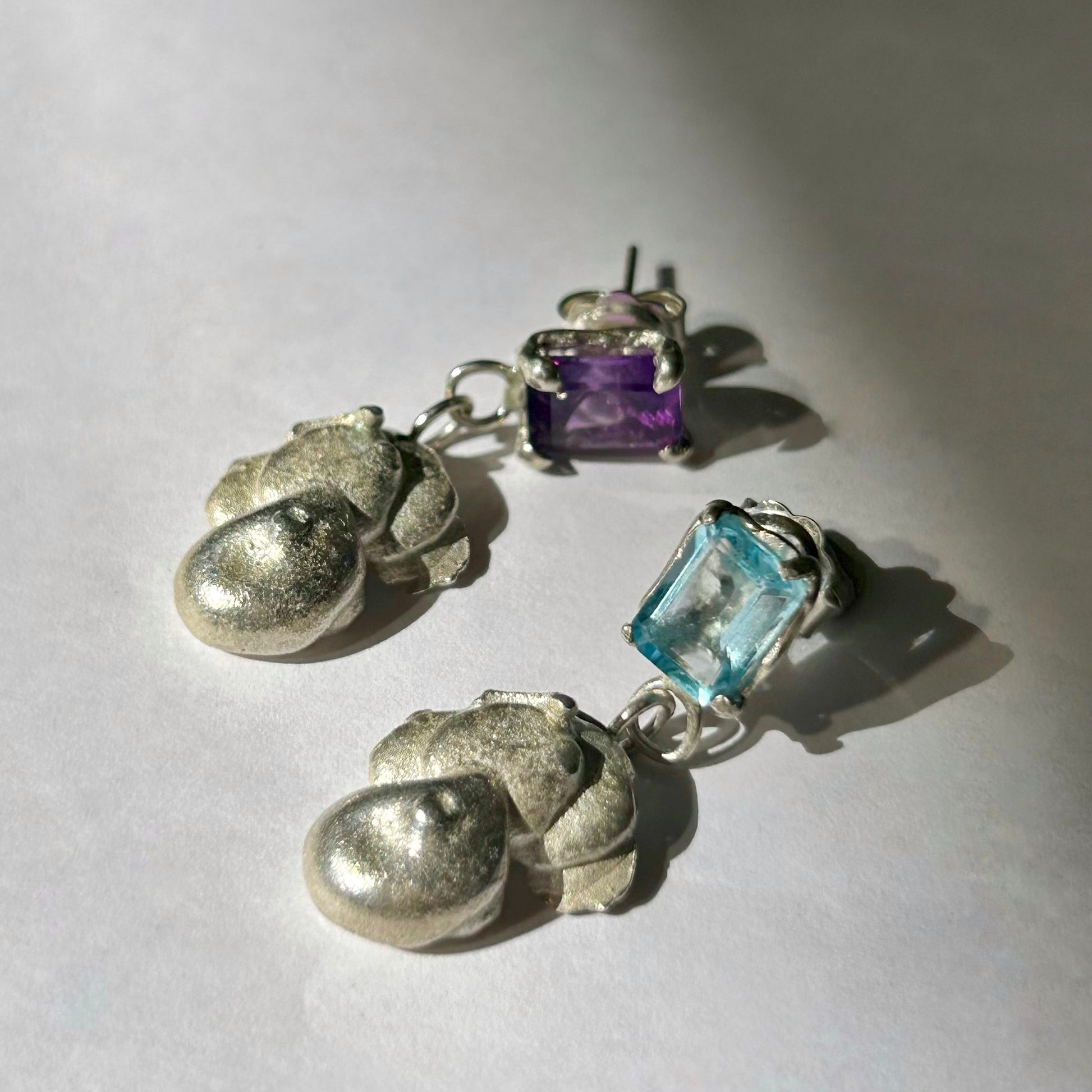 Aura Drop Earring with Amethyst or Topaz Gemstone