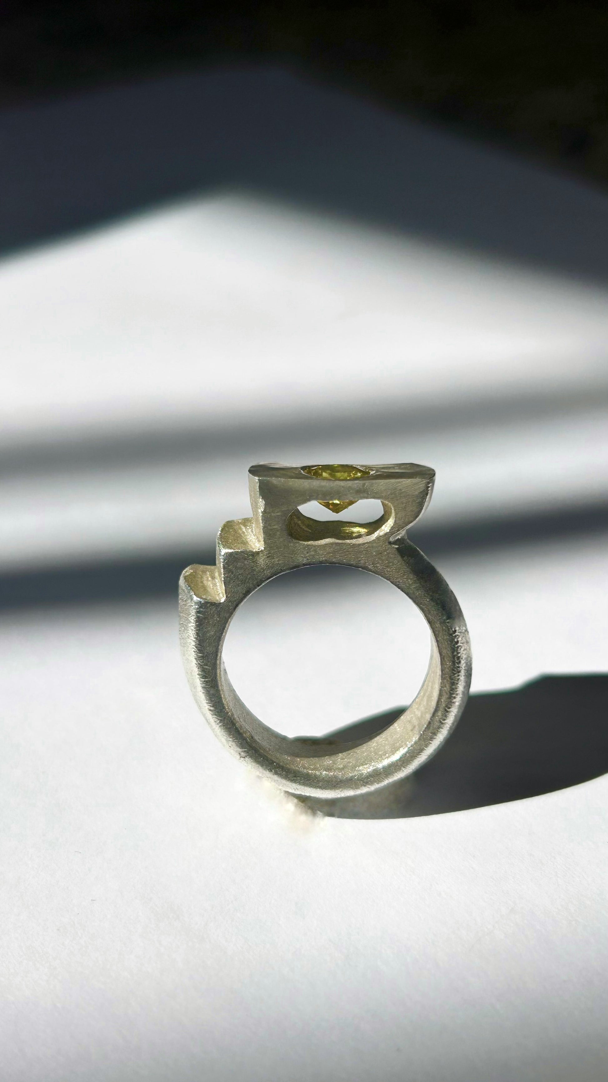 "Step by Step" when 925 silver meets a natural round brilliant cut Madagáscar Sphene gem in a one of a kind ring.
